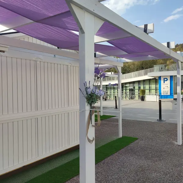 Nuestras pérgolas están pensadas para aportar sombra, confort y estética, convirtiéndose en un elemento clave en la ambientación de ferias, congresos, celebraciones al aire libre, zonas de descanso o espacios expositivos.